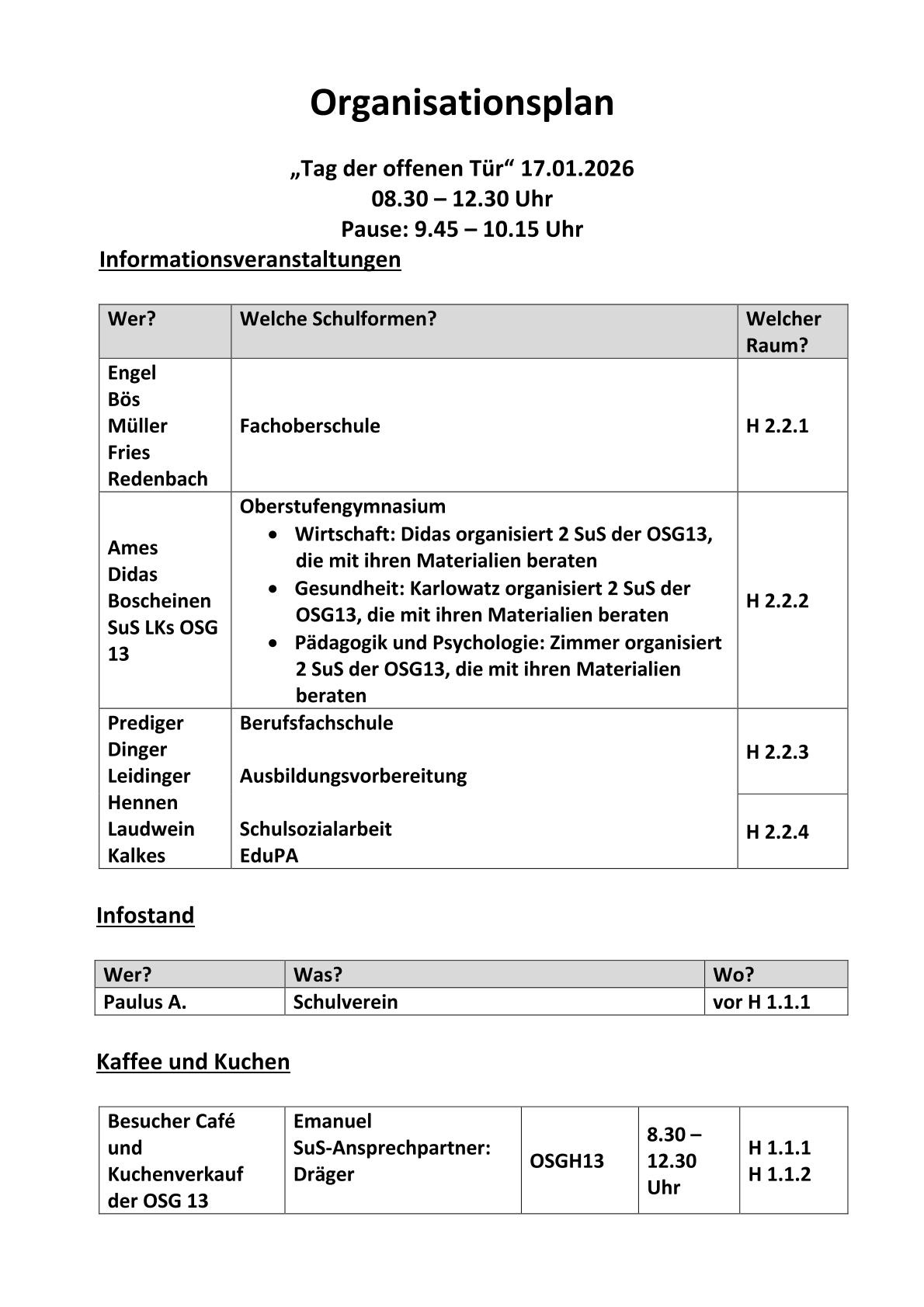 Tag der offenen Tür 27. Januar 2024 8:00-12:30 Uhr