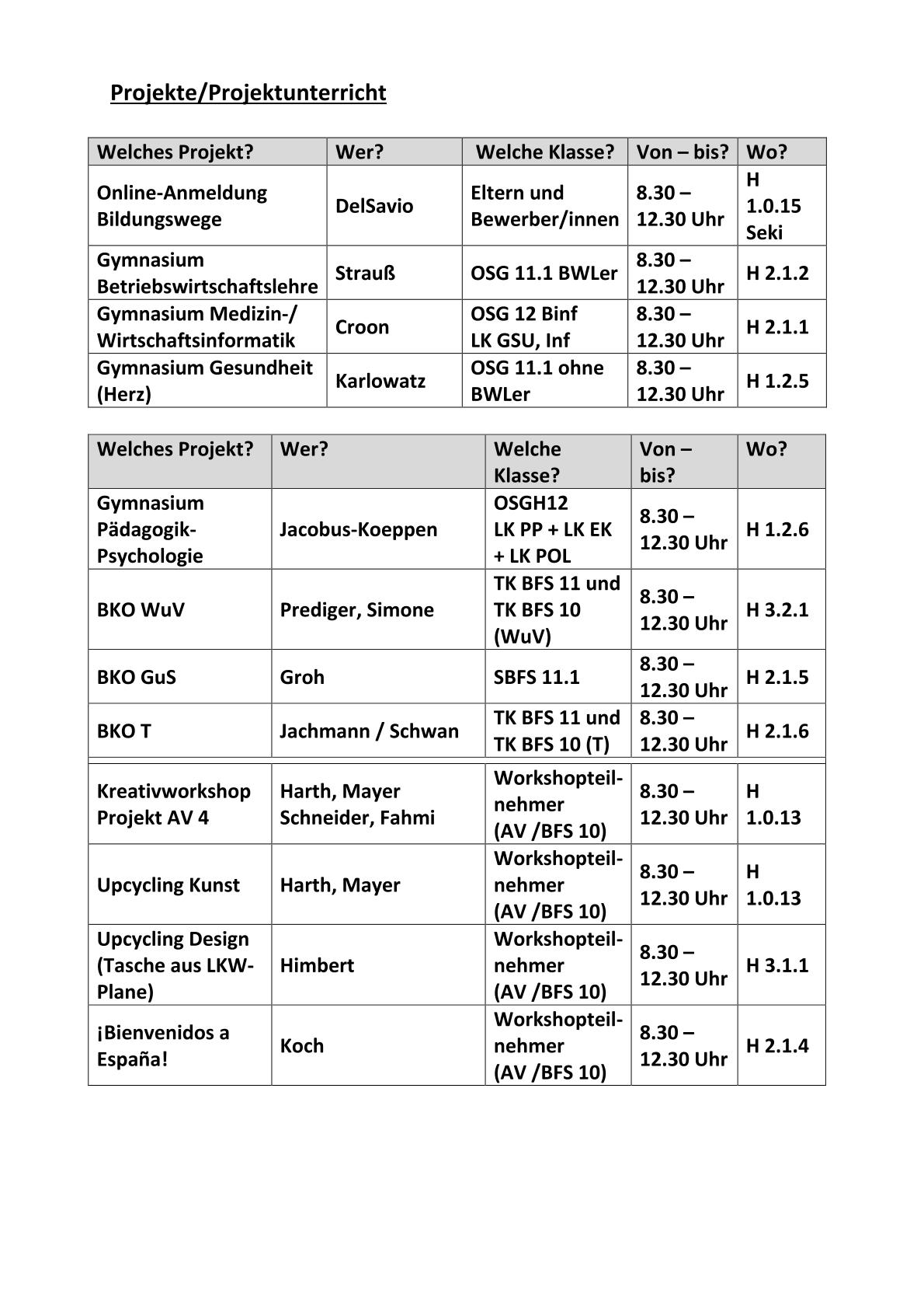 Achtung: Die Schüler*innen der Berufsschulklassen, die nicht auf dem Einschulungsplan aufgeführt sind, kommen an ihrem ersten regulären Schultag in die Schule.
